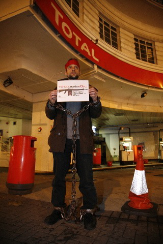 Within 10 minutes of the protest beginning staff closed the station, blocking off the forecourt and switching off the lights. Even the accompanying shop was shut. When it became apparent that the protest was continuing the police were contacted. One officer arrived and after consulting the staff told the demonstrators that there were not allowed onto the forecourt and risked arrest if they "interfered" with the business's trade by blocking the entrance or locking onto any of the pumps. (It should be noted that none of the protestors had entered the forecourt or caused any "interference".)