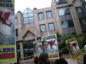 Then we moved on to a couple of more familiar locations, Goldman Sachs and AstraZeneca. Goldman Sachs were first and we shamed them for their involvement in HLS through their ally NYSE/Euronext. We demonstrated at this location for about 1 hour or so before moving off to AstraZeneca.