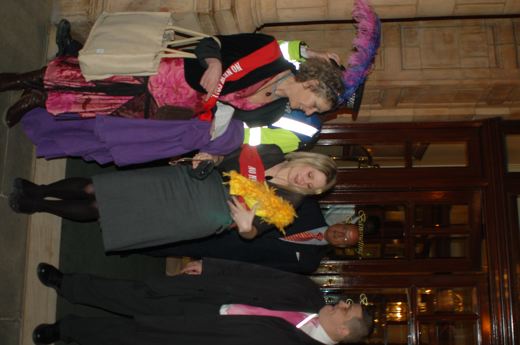Cops managed to arrest one bloke for not dressing the part and the suffragettes kicked arse yet again. his evening at the Landmark Hotel .