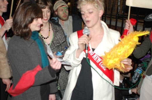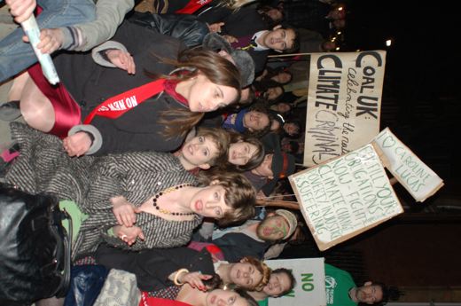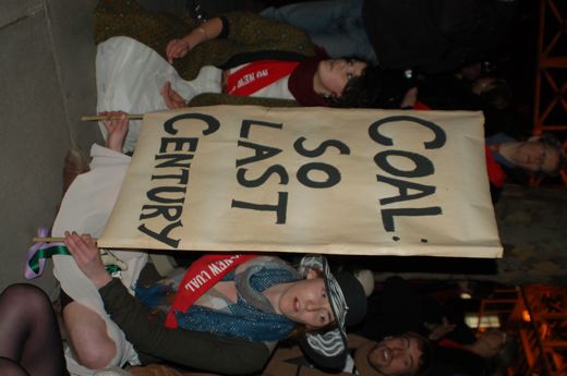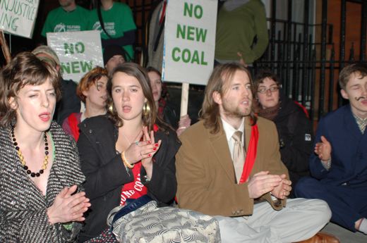 Protesters dropped banners and staged a peaceful sit-in to speak out at