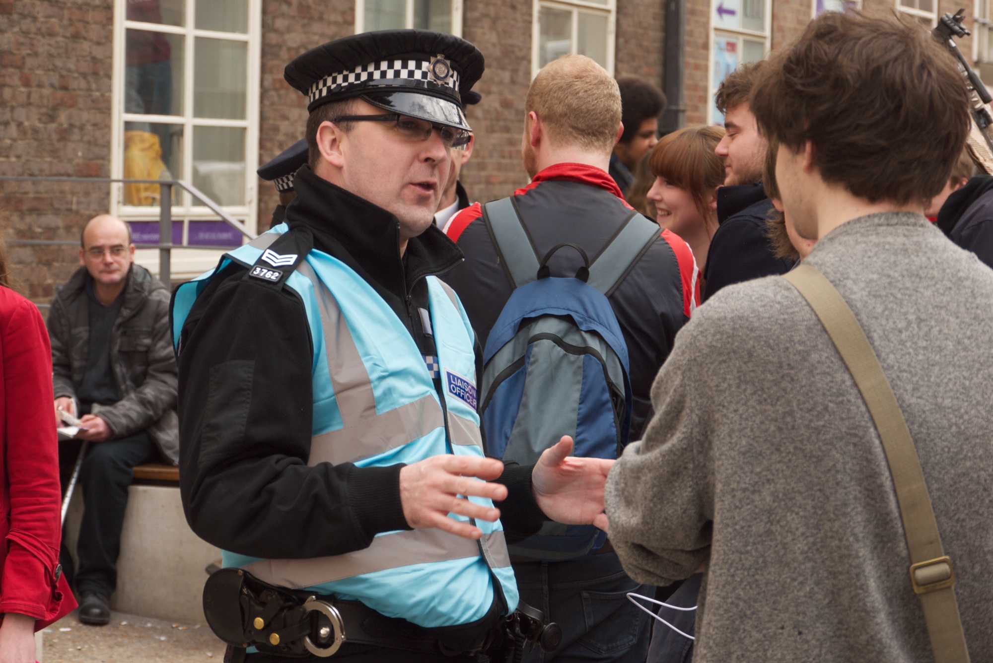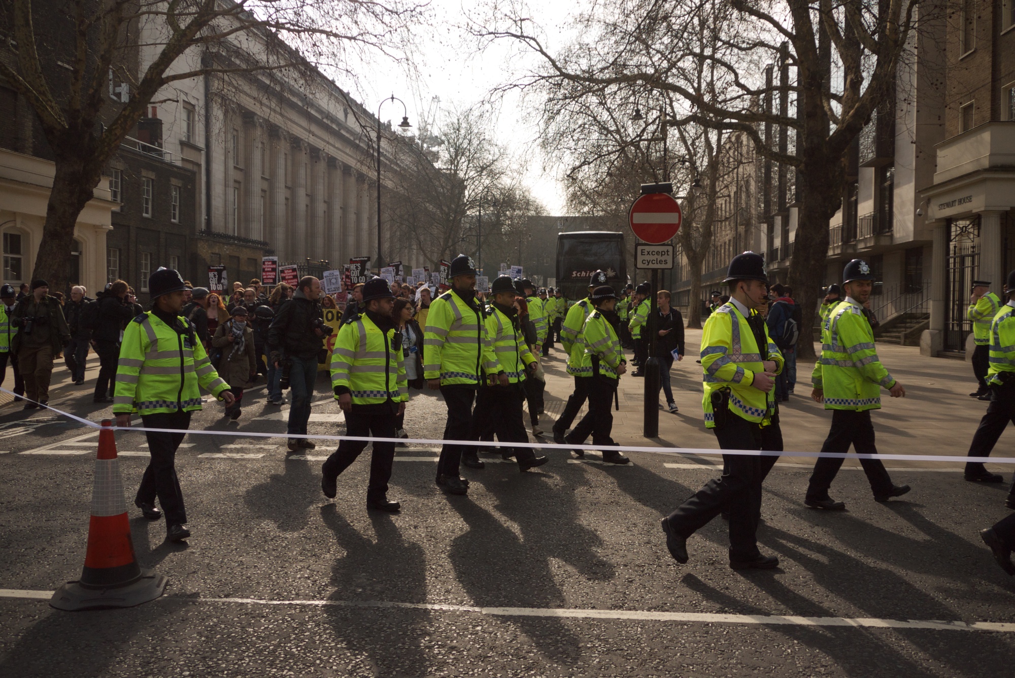 the crowd began to disperse, and the liaison officers gently informed everyone that they were of course welcome to continue their protest on the pavement opposite the department but that the road would be re-opened.