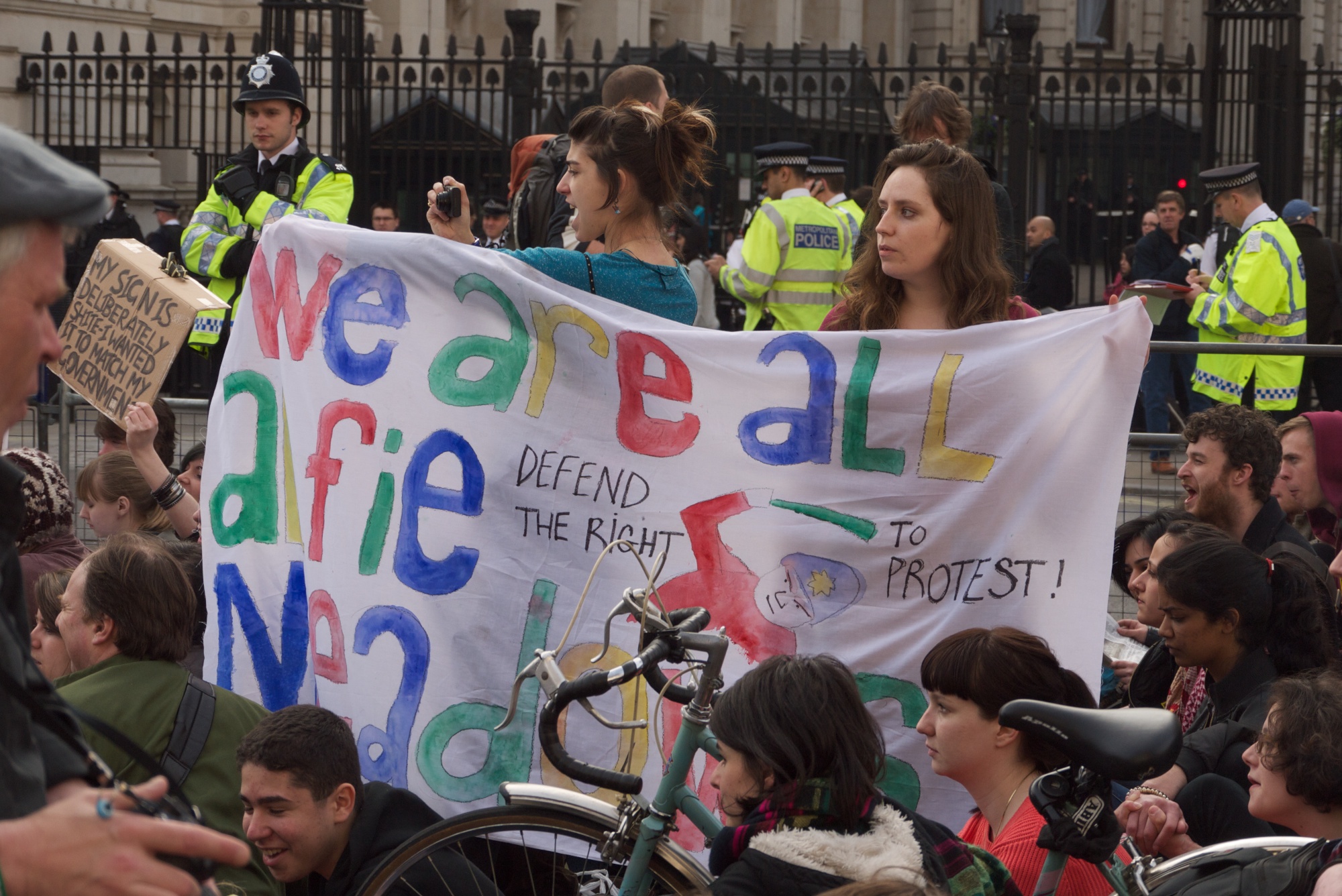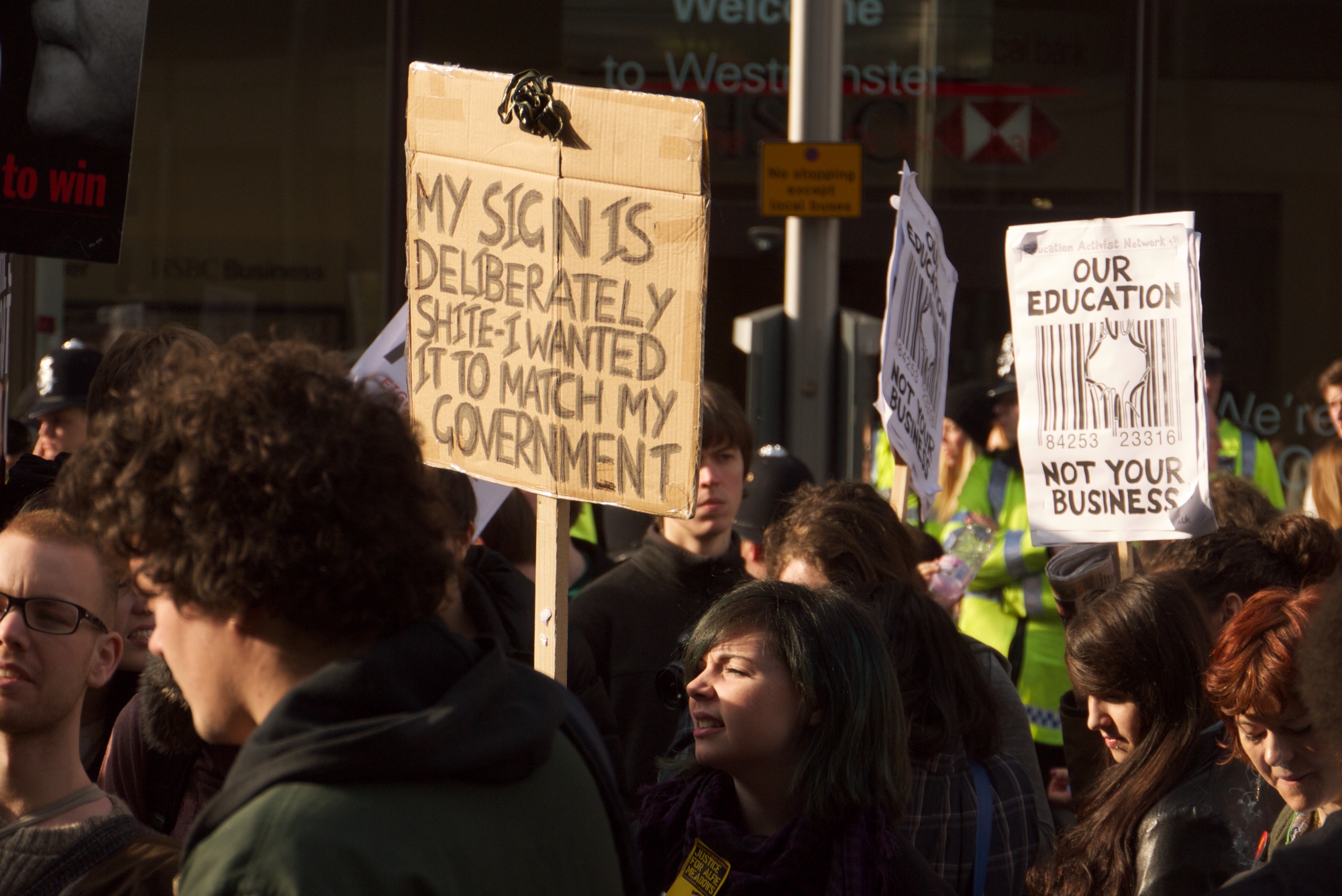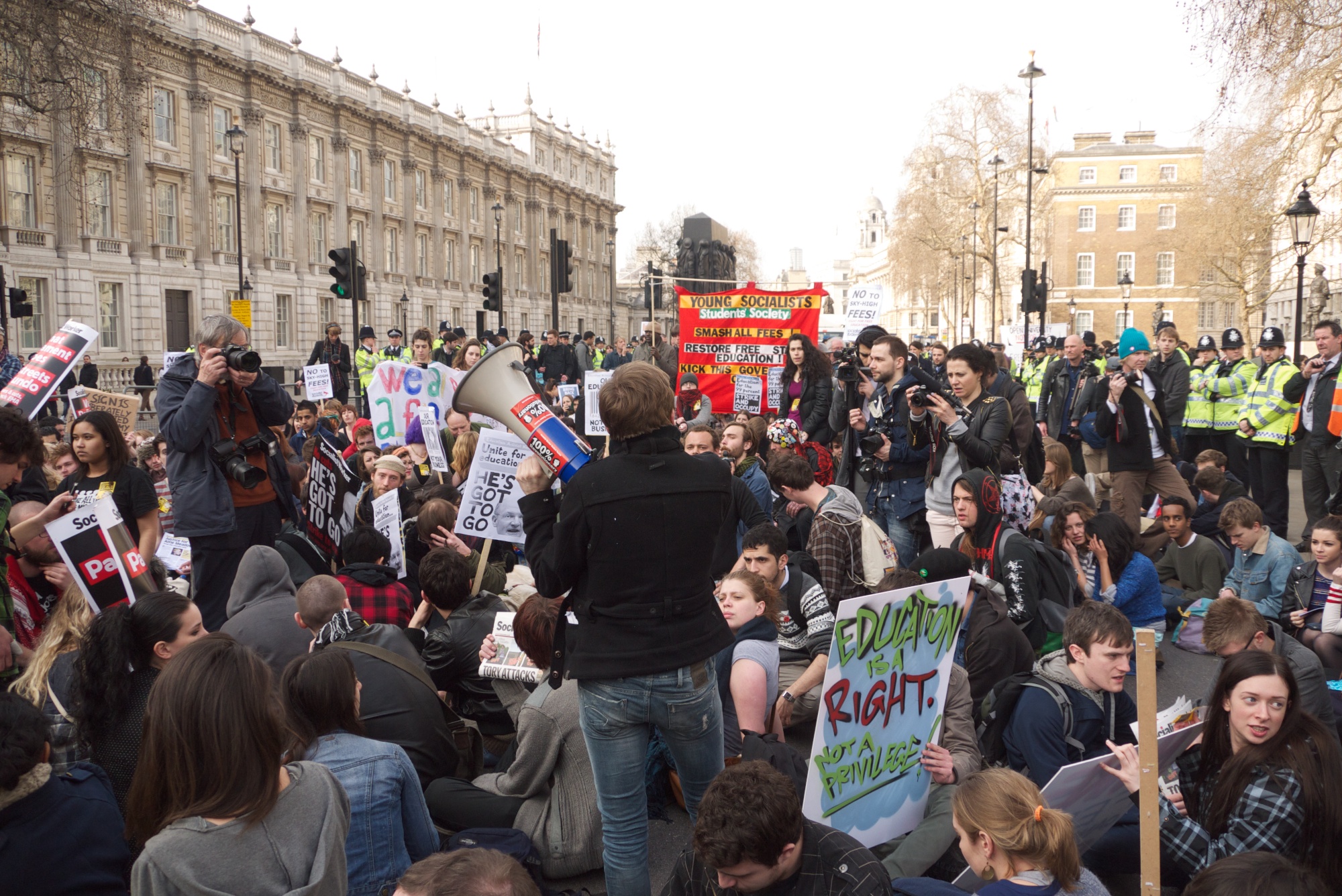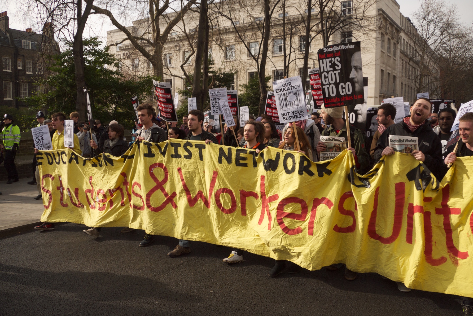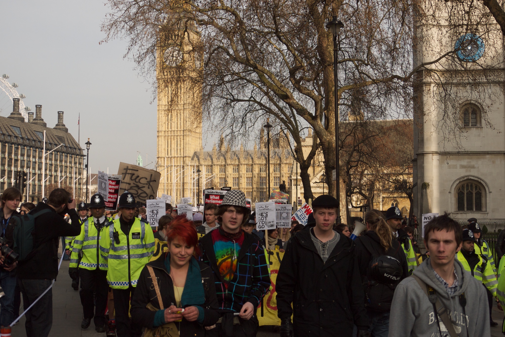 up to a thousand london students took part in the march yesterday afternoon, starting at malet street and ending with a call for david willett's resignation at the dept for business, innovation and skills in victoria. the procession was closely policed, and new tactics were deployed.