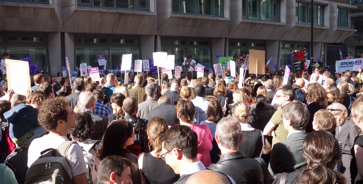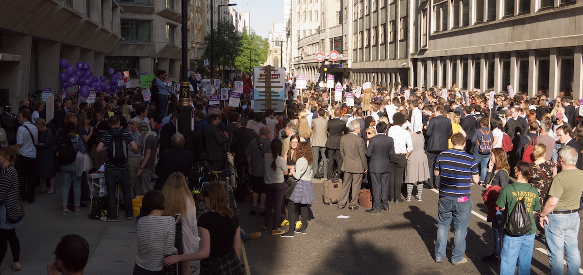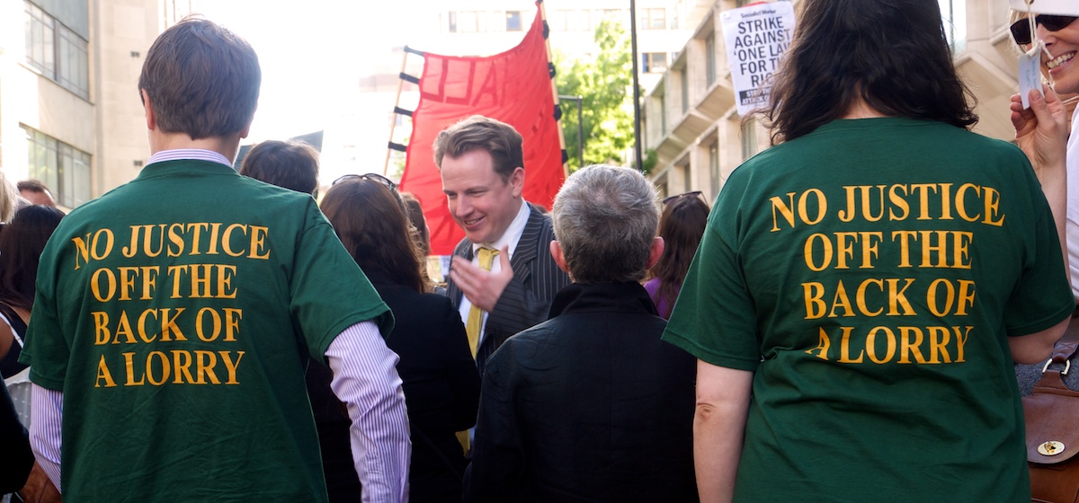 i couldn't help thinking that if this demo had comprised anarchists as opposed to besuited solicitors, the police would have quickly pushed people to the pavements. but for the lawyers, there wasn't a single policeman in sight.