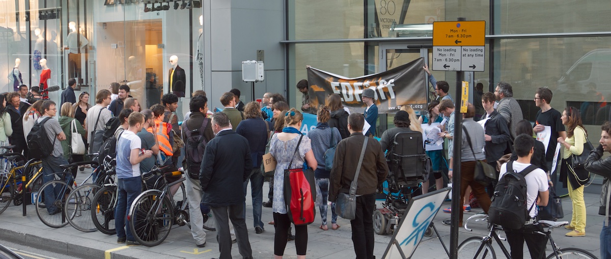 policing this evening was very hands off, with one constable around, and a short visit from an inspector, but EDF security guys mingled with the crowd and took photographs of everyone there.