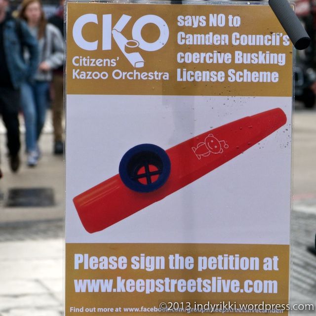 Kazoos are a great means of protest against the proposal, and should the law come in, they will be cheap to replace if seized. The orchestra has vowed to continue performances in Camden whether ‘legal’ or not, and they welcome all to join them (no experience necessary).