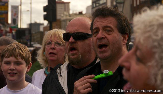 Next was a performance by the Citizens Kazoo Orchestra outside Camden High Street tube station. (Kazoos will be part of protests should the plans become law – at 50p each, the police and Council may find it hard to shift second hand instruments that they seize).