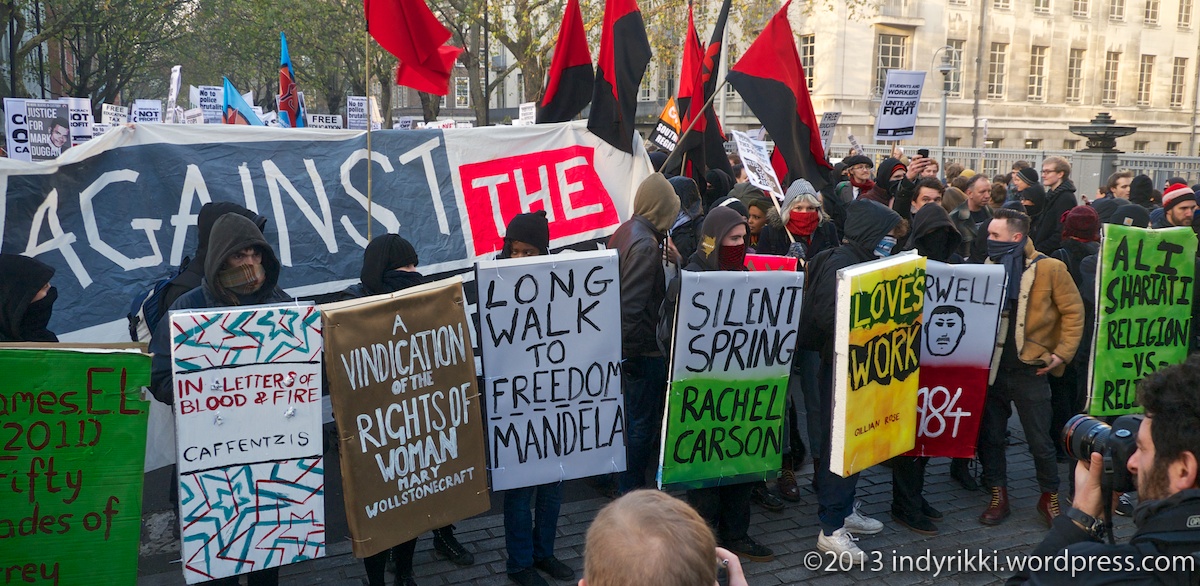 http://indyrikki.wordpress.com/2013/12/06/copsoffcampus-protest-attacked-by-police-and-yet-another-mass-arrest/) So yesterday, at the start of the national student #copsoffcampus protest in Malet Street, with news spreading that around 16 vans of riot police as well as crowd control horses were assembled nearby at Holborn, the lack of police was not necessarily a welcome sign.
