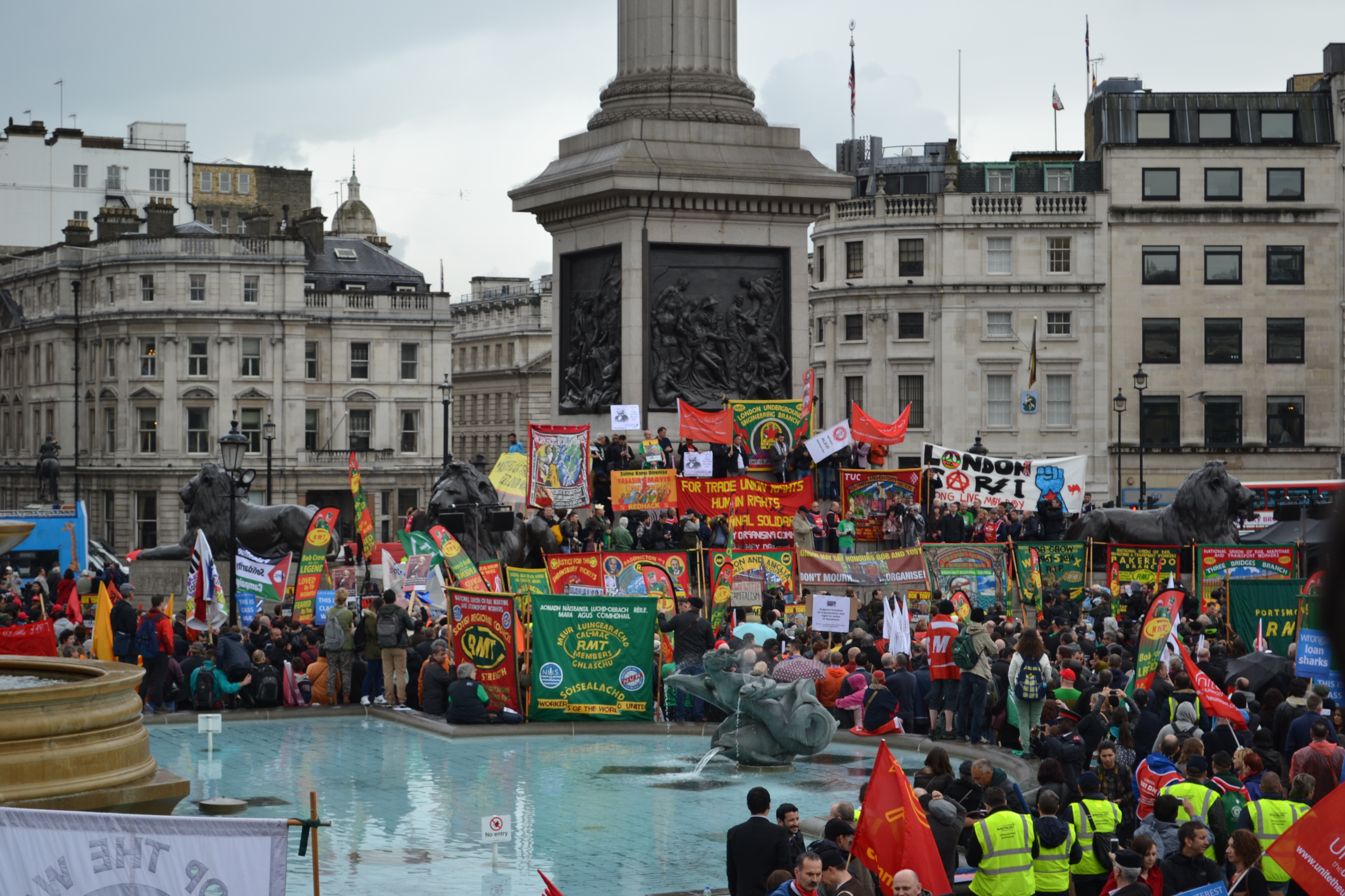 The parade wound its way along Clerkenwell Road, to Kingsway, Aldwych , the Strand and finally to Trafalgar Square.