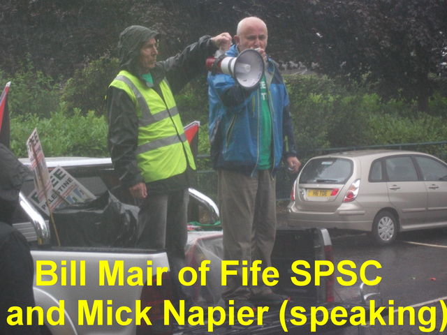As well as Kirkcaldy there were parallel events in Aberdeen and Glasgow though disappointingly none of these were reported on the BBC Scotland website. This is unusual as the BBC website almost always has a report of a few hundred words and a photo of any anti-war protest. The Glasgow event was said to have attracted about 3,000 people yet was invisible as far as the Beeb is concerned. At the time of writing on Sunday lunchtime (3rd August) the BBC main news website has a photo of the Israeli soldier who was thought to have been kidnapped but is now presumed dead. That picture has been there since Friday. There is a report of yet another Israeli attack on a UN school in Gaza but remarkably this is given less prominence.