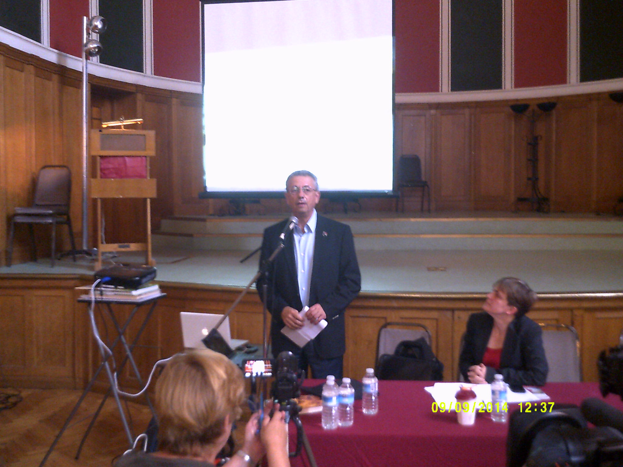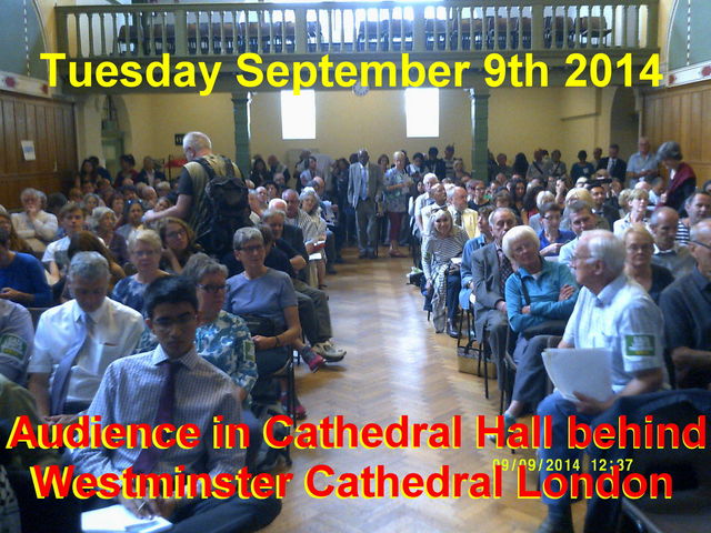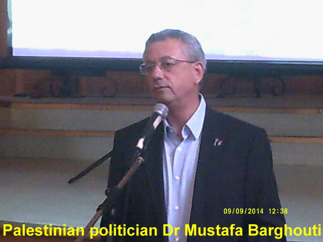 The day began with registration at Cathedral Hall just behind the Roman Catholic Westminster Cathedral in London at 12 noon. The audience numbering several hundred listened to a detailed presentation from Palestinian medical doctor and political activist Dr Mustafa Barghouti. His BBC profile: