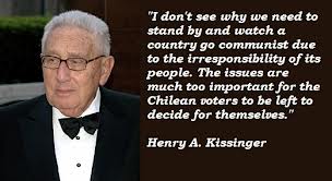 Even at 91 Henry Kissinger's advice is much sought after and he attended the 2014 Bilderberg meeting of the rich and powerful in Copenhagen. He had the gall to advise Scots to vote `No` to Independence in the Scottish Referendum of September 2014.