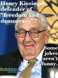 When asked to comment on Kissinger’s award of the Nobel Peace Prize having killed so many people American singer song-writer and satirist Tom Lehrer merely said “Satire is now obsolete.”