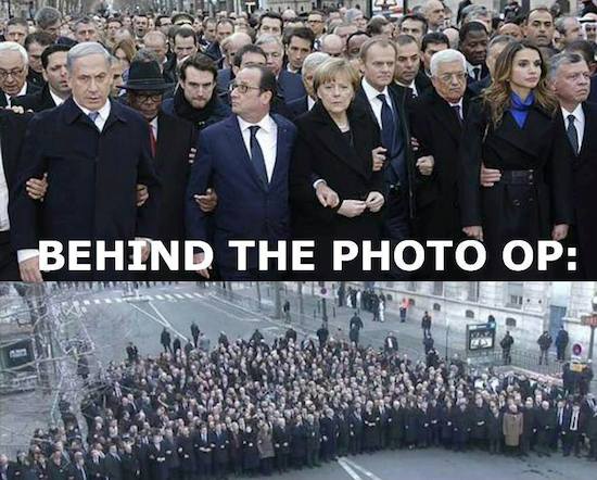 Al Jazeera covered the unity march on Sunday afternoon with around 40 world leaders shown interlocking arms which supposedly sent out a message to the `International Community` - whoever they are.
