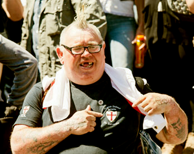 The EDL's infamous fascist punk with the nine months old pregnant beer belly, who shouts racist abuse on EDL marches at Muslim people, was spotted selling poppies in Peterborough today. Known as the Nazi Punk, this odious member of the far right group was believed to have been collecting for the Royal British Legion without authorisation, which is sickening to say the least. Even more terrifying is how someone, whose politics equate to the toxic genocidal hate of Adolf Hitler's national socialists, was collecting for the memory of the allied heroes. ABSOLUTELY VILE!