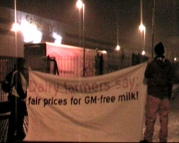 This was in protest over Sainsbury’s selling milk from cows that have been fed GM feed.