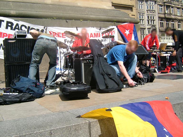 The event received severe harassment by the police, who arrived mid-way through and demanded the names, addresses and date of birth of all those involved in running the event, under accusations of collecting money without a permit. The organisers maintain that they do not need a permit, as collections taken at a meeting in the open air are exempt under council regulations. The police then attempted to seize the money which had been collected as evidence. When a comrade holding the money tin explained that we had firm legal advice that such a seizure of money was unlawful, he was arrested for obstruction. A lively picket was then organised at the police station, which was supported by passers-by and members of Tyneside Stop the War, and continued until the comrade was released three and half hours later. He has been bailed without charge to 3 September, and comrades will now be discussing how best to organize in defence of all our democratic rights.