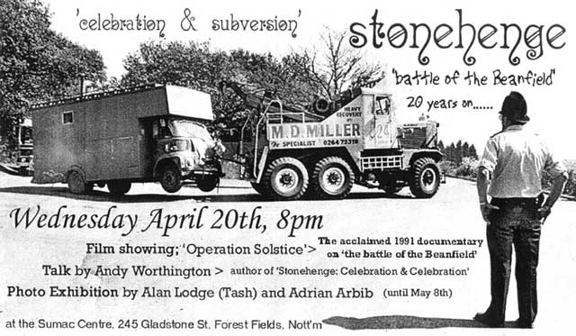 Work contributed by Tash [Alan Lodge] & Adrian Arbib, including a talk by Andy Worthington, author of 'Stonehenge: Celebration and Subversion'