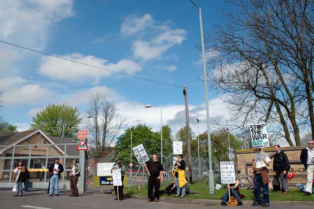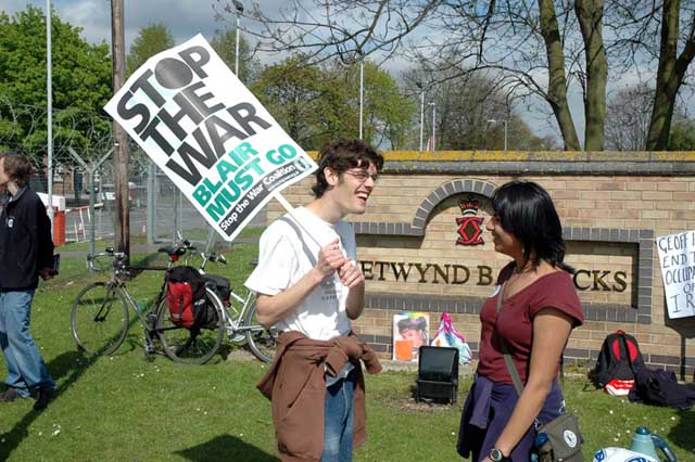 Nottingham Stop the War Coalition picketed the main entrance of Chetwynd Barracks so as to reach out to service personnel and their families. We wanted to persuade them not to support the war in Iraq. They have a legal right to become conscientious objectors.