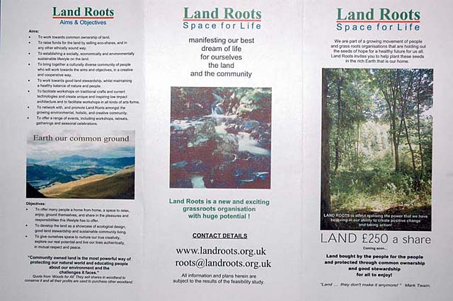 We have a steering group who are in the process of drawing up documentation, doing a feasability study and establishing environmental and ethical policies etc. Over the next few months we will be forming LAND ROOTS Community Interest Company, to achieve our aims.