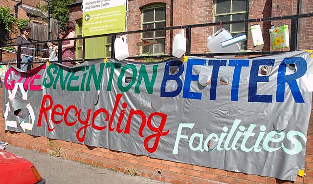 This another yet another event in Sneinton event, designed to draw attention to Nottingham's lamentable lack of recycling facilities. This event was to highlight this fact, and further, to show that many items, thoughtlessly discarded, might have a 'second life' if people just thought about it. Many ideas for 'recycled arts' were explored, with much local support and and many ideas for kids to get involved.