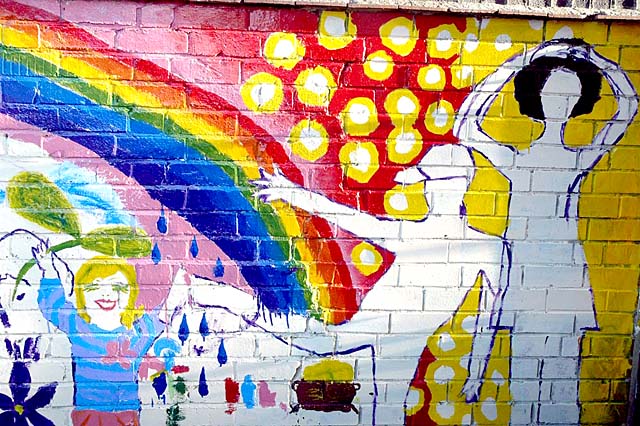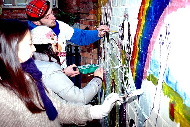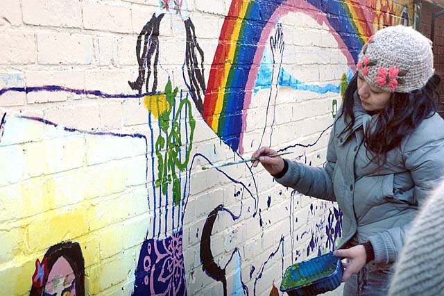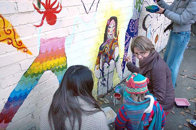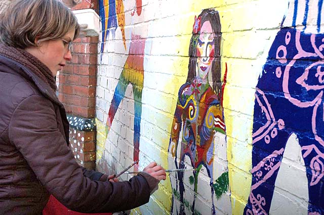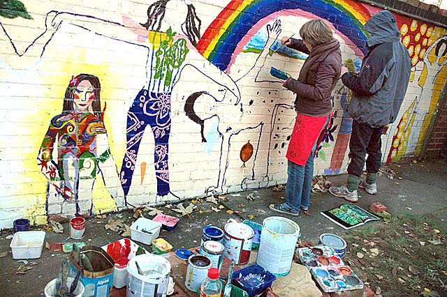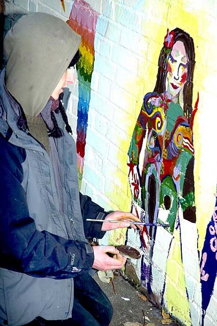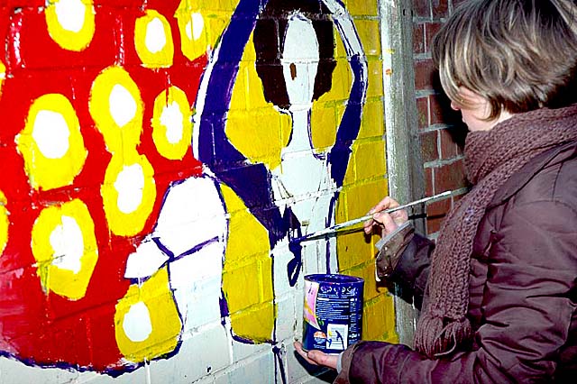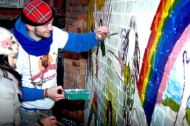 This Saturday saw the continued work on a wall mural painting project at the ASBO squat in Radford [33 Burns Street]
