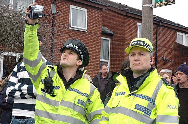 I missed a picture I would like very muchley to have got. Half way though tuesdays event, the ball broke loose, and landed only a few feet from this police surveillance team. About 15,000 folks charged after it, flattening the plod there. ouch!!
