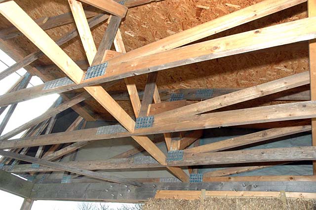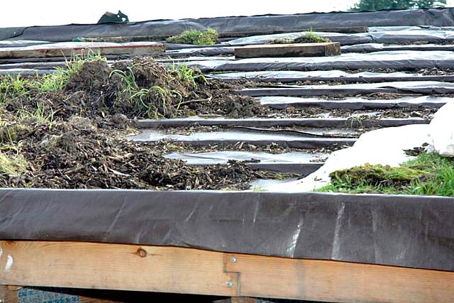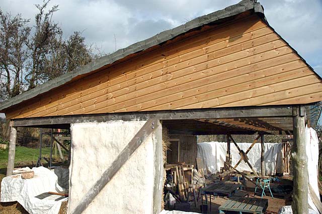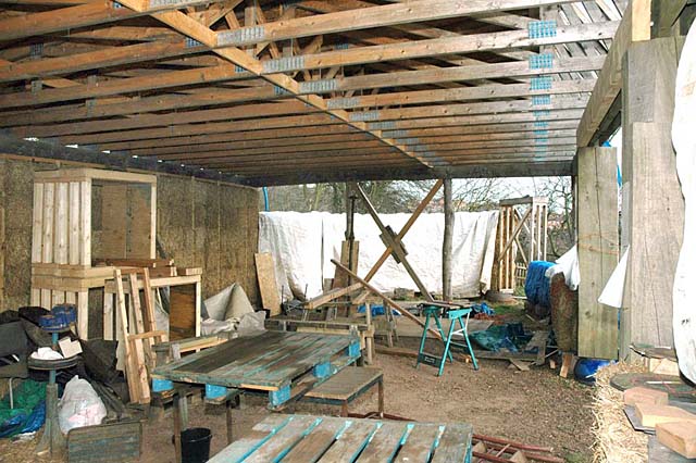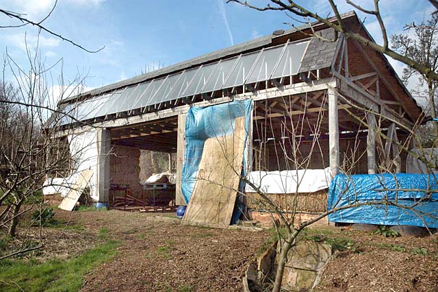 Activity is starting again at EcoWorks: The Straw Bale building continues. The building had been covered for much of the winter, to keep the elements out. Back in October [see set 12 of this project], some of the bales were getting a little damp. The was some rot and a few mushrooms growing out of them. Thus these had to be changed and a better effort made to cover the structure over the last few months .....