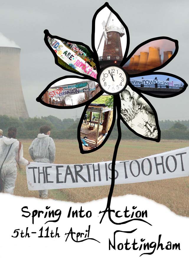 'Spring into Action' is part of an emerging grassroots movement against climate change. Born out of the Camp for Climate Action (www.climatecamp.org.uk), 'Spring into Action' unites people across the east of England into making changes in our own lives, creating small scale solutions in our communities and resisting those who still seek their own short term gain over a safe future for us all.