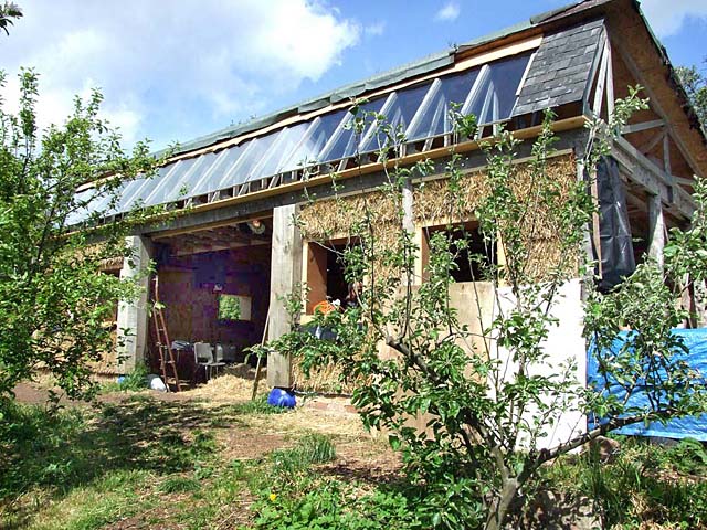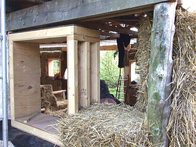 Work is continuing at EcoWorks with the Straw Bale building. The window frames, now fitted, is the first stage of the 'final enclosure' of the building.