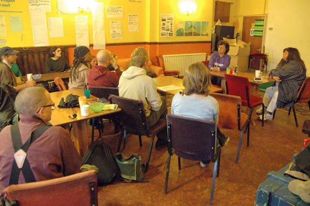 They spoke about the experience of reclaiming and defending a piece of land from development. Their action has been incredibly successful, having prevented the development and protected the land from an armed police incursion.