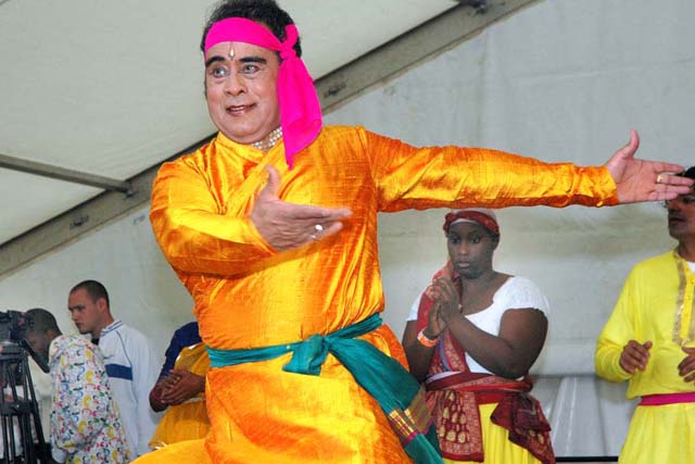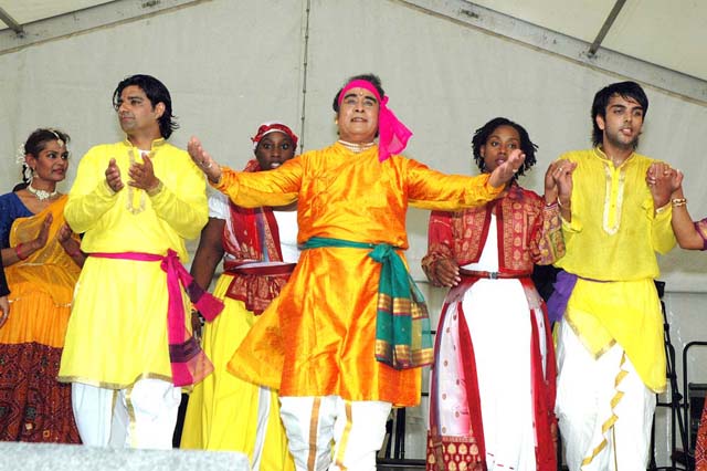 In addition to the headline acts, there was much involvement from local youth groups, hands-on art displays ... The was a colourful procession around the site, with large puppets and an Indian Brass Band.