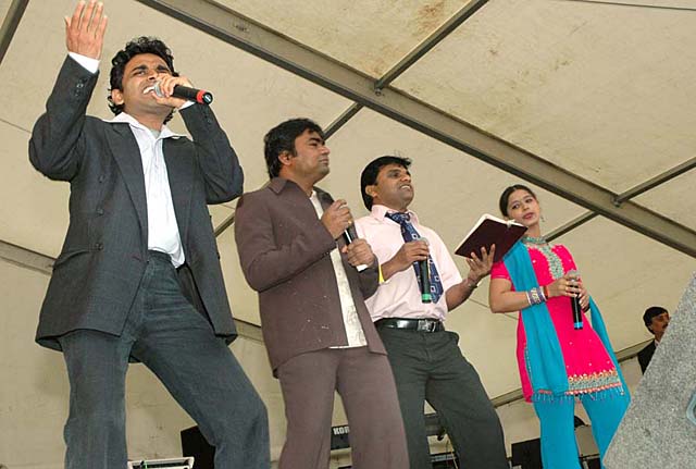 In addition to the headline acts, there was much involvement from local youth groups, hands-on art displays ... The was a colourful procession around the site, with large puppets and an Indian Brass Band.