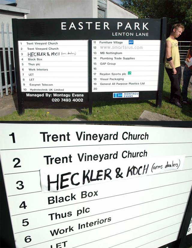 http://indymedia.org.uk/en/regions/nottinghamshire/2007/07/376844.html Event announce: Heckle Heckler & Koch