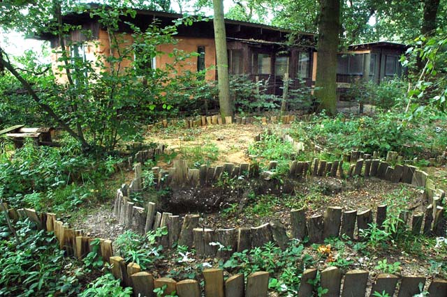Since August 2005, Hill Holt Wood has been moving forward in its desire to make the site an exemplar sustainable rural community. Once completed the community will include 5 houses and community hall, built to the highest possible standards of sustainability, in Hill Holt. These buildings will provide both models of sustainable ecobuild in a rural settings, as well as a centre of learning about sustainability and ecobuild. While the entire project has received Outline Planning Permission, the Woodland Community Hall received Full Planning Permission in August 2006. The building design is the result of an collaborative effort between Hill Holt Wood, the University of Lincoln and Simons Design of Lincoln. The building will include a circular rammed earth conference hall with a reciprocal frame roof, wood framing and cladding from Hill Holt Wood, a solar photovoltaic array, a biofuel micro-chp system with underfloor heating, an electrical storage battery array, recycled floor tiling and insulation, rainwater harvesting and be integrated with the adjacent permaculture garden. The Woodland Community Hall will include further features in its drive to construct a building that produces significantly less Carbon Dioxide in its construction and operation than another building of equivalent size.