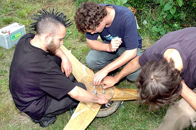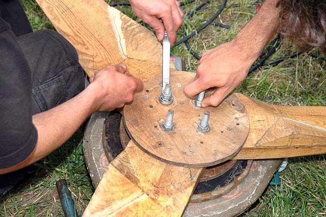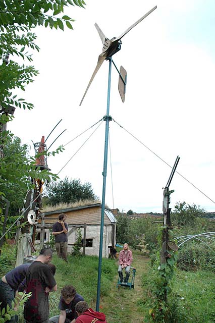V3 Power build small wind turbines and run courses teaching people how to make their own turbines. They put a couple up at various events, to inspire folks to get involved with such alternatives.