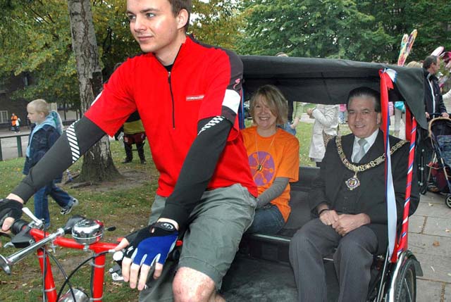 The Lord Mayor opened the event, being transported by rikshaw all the way from the Robin Hood statue ...... to the Castle grounds. In his speech, he found it necessary to mention he had left the Bentley at the Council House, for the day. I guess he'll use it all the rest of the year..... However, well done M'lud.