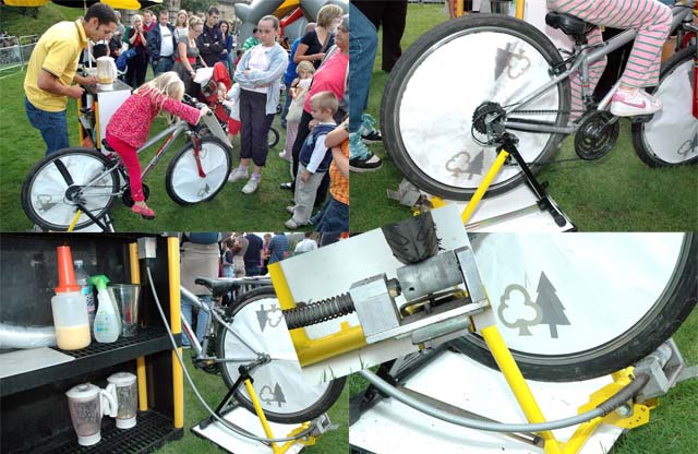 Apart from being a family day out .... it is designed to give the public a notion of sustainable living and transport. Cycling was a big thing there, with a variety of bikes, bicycle maintance, a bicycle powered bubble machine, and a personal favourite, a bike that powered a blender, mechanically mashing up fruit for a smoothie. The customer being expected to peddle to produce your own smoothie ..... wicked!
