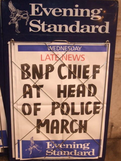 Police Federation officials claimed they were powerless to prevent Mr Barnbrook from marching. Spokesman Metin Enver said he was not invited specifically but police officers recognised him when he turned up. He said: "Some of my colleagues saw we had the BNP Mayoral candidate with us. The one thing we want to make clear is we didn't invite him. It wasn't a closed march. He chose to attend by his own accord which is his right in a democracy. It is disappointing if anyone chose to join the march for their own agenda.