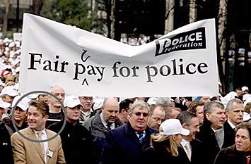 Mr Barnbrook, a BNP councillor in Barking & Dagenham and a candidate in the election to pick London's next Mayor, told the Standard he took part to support the police and denied his presence was an embarrassment. An estimated 22,500 off-duty police officers, many wearing white baseball caps with the logo "Fair play for police", walked from Park Lane to Millbank, passing close to the Houses of Parliament.