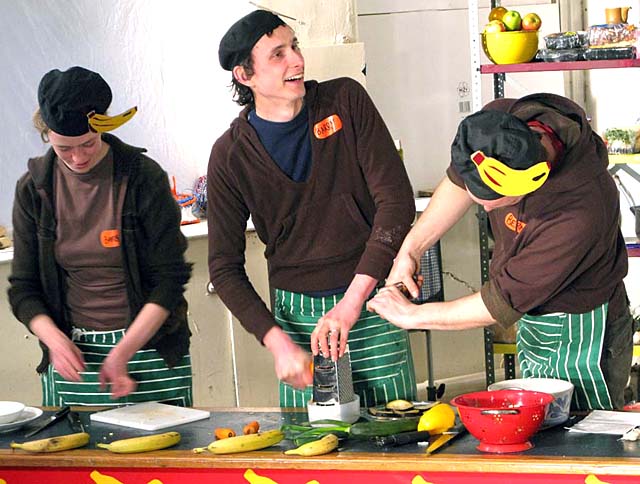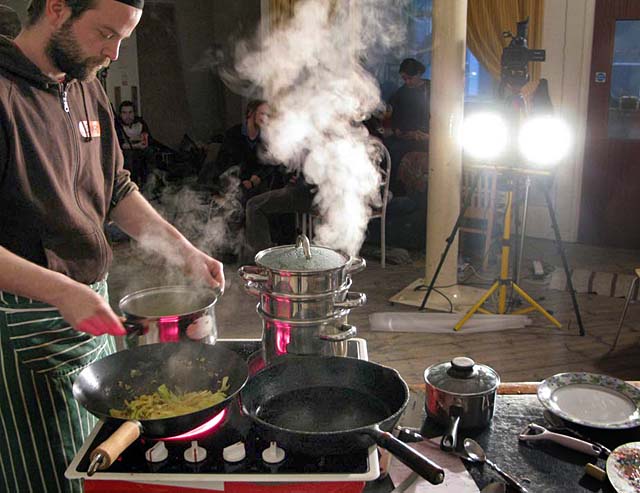 In front of an invited audience ..... the event was cast in a gameshow style. A cross between Ready Steady Cook and Scrapheap challenge!