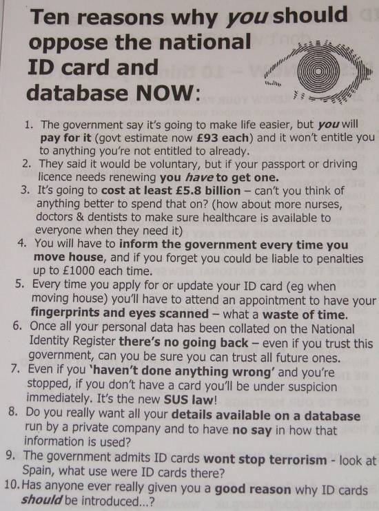 Quoting from our "Stop Using Their Logic" piece, which we wrote in October 2006 aimed at other anti-ID campaigners - specifically NO2ID - who were using this argument a lot at the time (and still do on occasion):