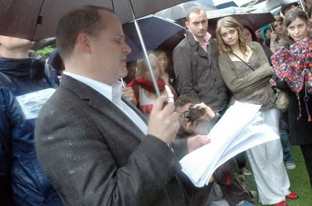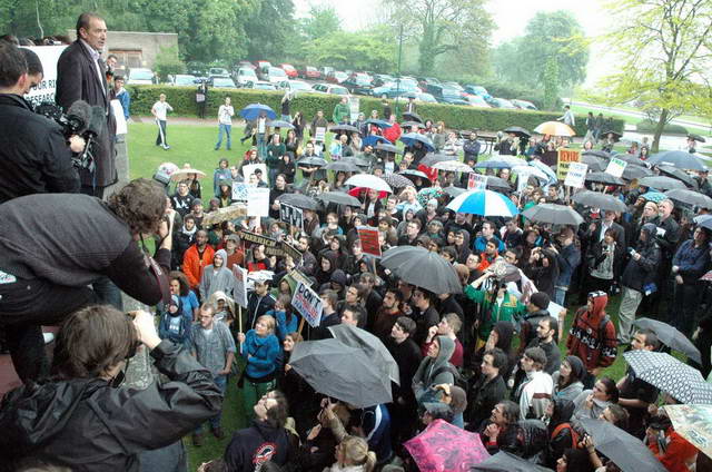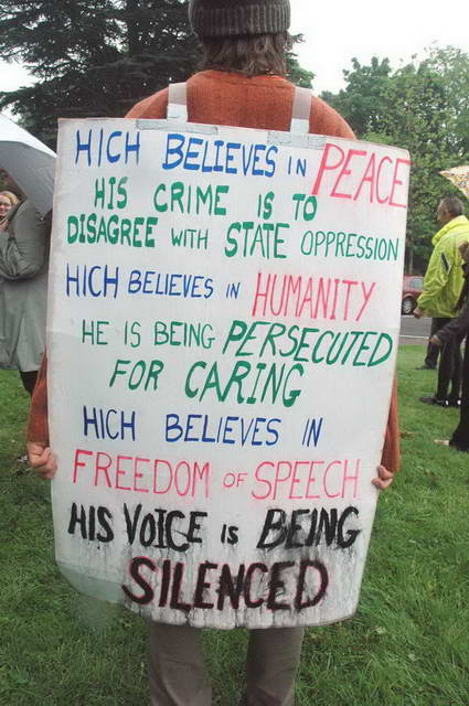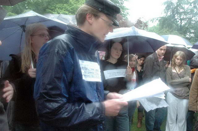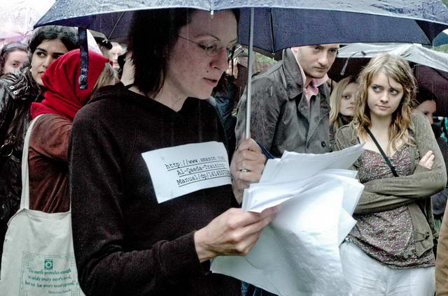 Around 500 staff and students gathered in front of the library to hear the readings of the alleged ‘radical material’. Banners with messages such as ‘protect academic freedom’, ‘Right to research’, and ‘Free Hich’ were on display. Snacks, ‘Free Hich’ T-shirts and copies of Ceasefire (the peace movement journal of which Hicham is editor), were on sale to help raise money to cover Hichams’ legal costs.