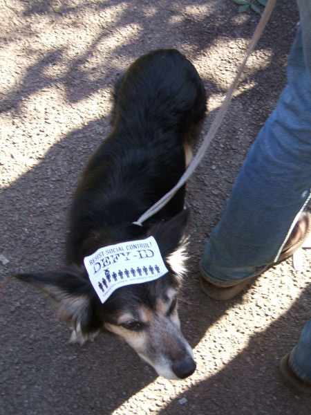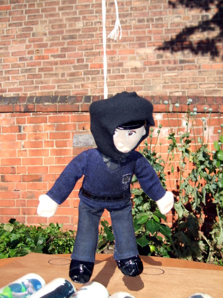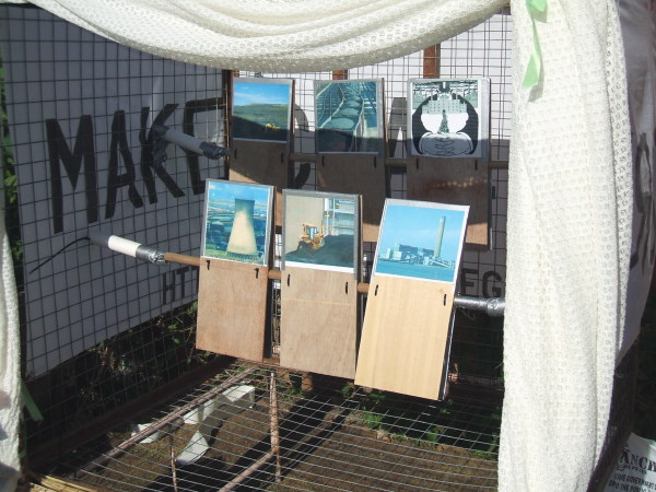 The more imaginative groups had games and attractions associated with their campaign. Shut Down H&K, for instance, asked people to guess the number of "human beans" in a jar to illustrate how many people are killed weekly by H&K weapons. Another, "Are you fighting FIT?" was a variation on table skittles in which a cuddly toy dressed as a police man was suspended from a frame (looking suspiciously like a gallows) was used to knock over skittles which bore images of Forward Intelligence Team members and police evidence gatherers. (See the attached video to witness this in action.) "Sock the climate criminals" involved throwing weighted socks at targets with bad things (coal power stations, capitalists etc.) on one side and good things (pretty views, wind power) on the other.