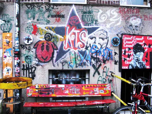 Many building ripe for squatting and communal arrangements. We visited the KTS social centre