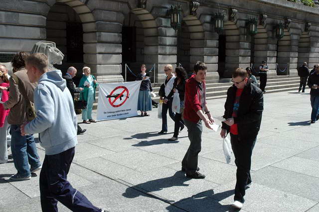 People felt it necessary to hold this event, extra to the usual gathering outside the industrial unit [Unit 3, Easter Park Industrial Estate, Lenton Lane. Nottingham NG7 PX.] since they didn't feel those protests were getting sufficient local press exposure. Hence, taking the issue direct to larger numbers in the city centre themselves.