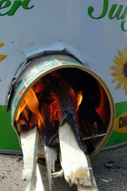 Folk were also building a 'Rocket Stove', on this occasion, especially to make popcorn. Together with foil 'solar ovens', an object to indicate energy efficiency.