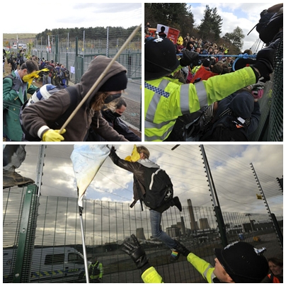 (Currently at 15:15 the second mass swoop attempt is underway with reports coming in of more sections of fence being pulled)