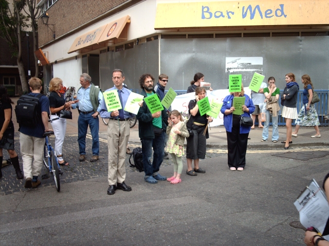 I was one of those Greens and most of us left nearer 12pm BUT we had been there since 10.15am. When we left other people had already begun to drift away as it was clear Brown and his cronies would not be coming out for quite some time.
