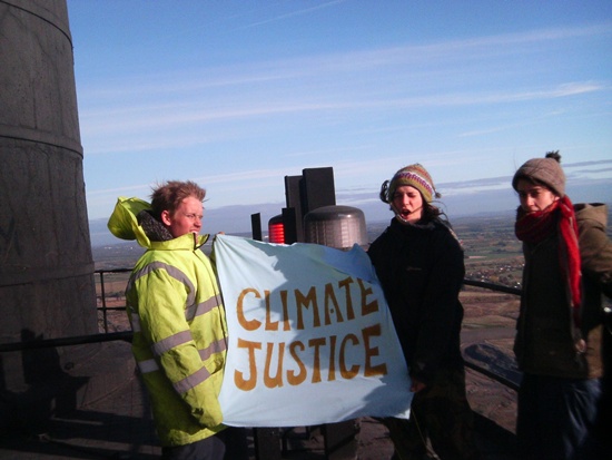 “In every country CO2 emissions are linked to economic growth, so in countries like the UK our insatiable hunger for more and more products and consumer goods is driving climate change. The world’s finite resources need to be shared more fairly, and the richest countries which got us into this mess need to take the lead in reducing emissions. We’re on this chimney to demand climate justice as the world prepares to meet in Copenhagen. We’re defending human life and people’s property around the world that’s in immediate need of protection from the ravages of rising temperatures.”