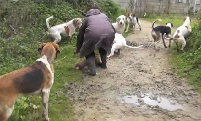 The footage clearly shows hounds trying to bite her chest and abdomen – no 'quick nip to the back of the neck', the myth of a quick death still propagated by Hunts, despite having been long since refuted by post-mortem evidence on foxes killed by hunting hounds.